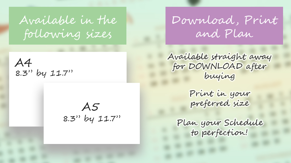✔ Printable PDFs come in 2 sizes: A4, A5