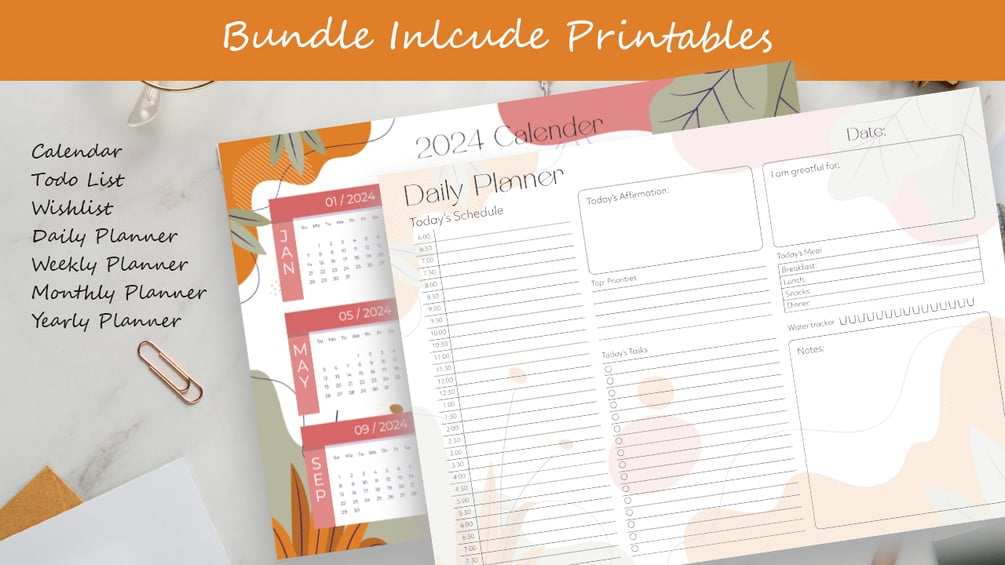 Printable Planner Bundle - Digital Planner / Calendar / Todo List / Wishlist / Daily Planner / Weekly Planner / Monthly Planner / Yearly Planner